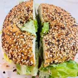 One standout dish is the bacon egg and cheese bagel with a honey glaze, which customers describe as "stupid delicious." The bagels are perfectly chewy and soft, making them the ideal comfort food. The pastrami sandwich and the Mountain View on za'atar are also highly recommended.