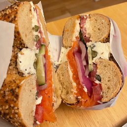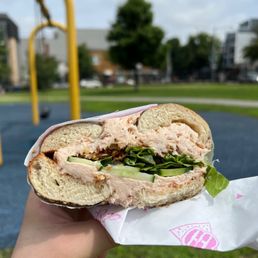 This place is buzzing. I knew it was special when I posted a story on IG and so many people had positive things to say. My thoughts: + Ordering online is so easy and on time + Both sandwiches and bagels looked great + Fun outdoor paint makes you happy - This location only has outdoor dining Try it out for yourself and get in on the hype.